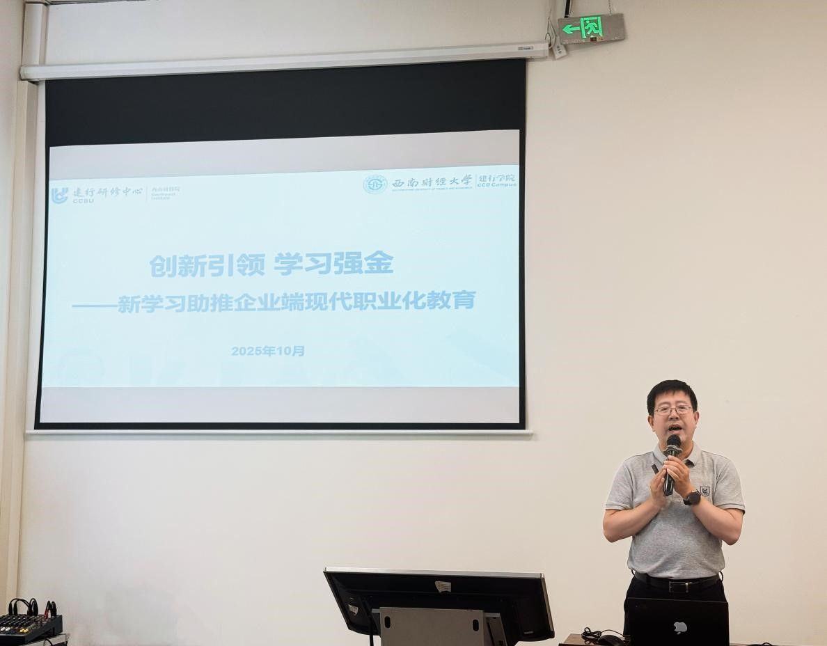 许军平以《创新引领 学习强金——新学习助推企业端现代职业化教育》为题,系统阐释了新时代金融人才培养的创新路径。课程围绕四个方面展开:一是新时代呼唤高质量“新学习”;二是构建新学习理念,助推企业端现代职业化教育;三是西南研修院在新学习生态上的探索;四是西南研修院未来将持续在新学习发力。通过展示建行研修中心西南研修院(西财建行熟女av